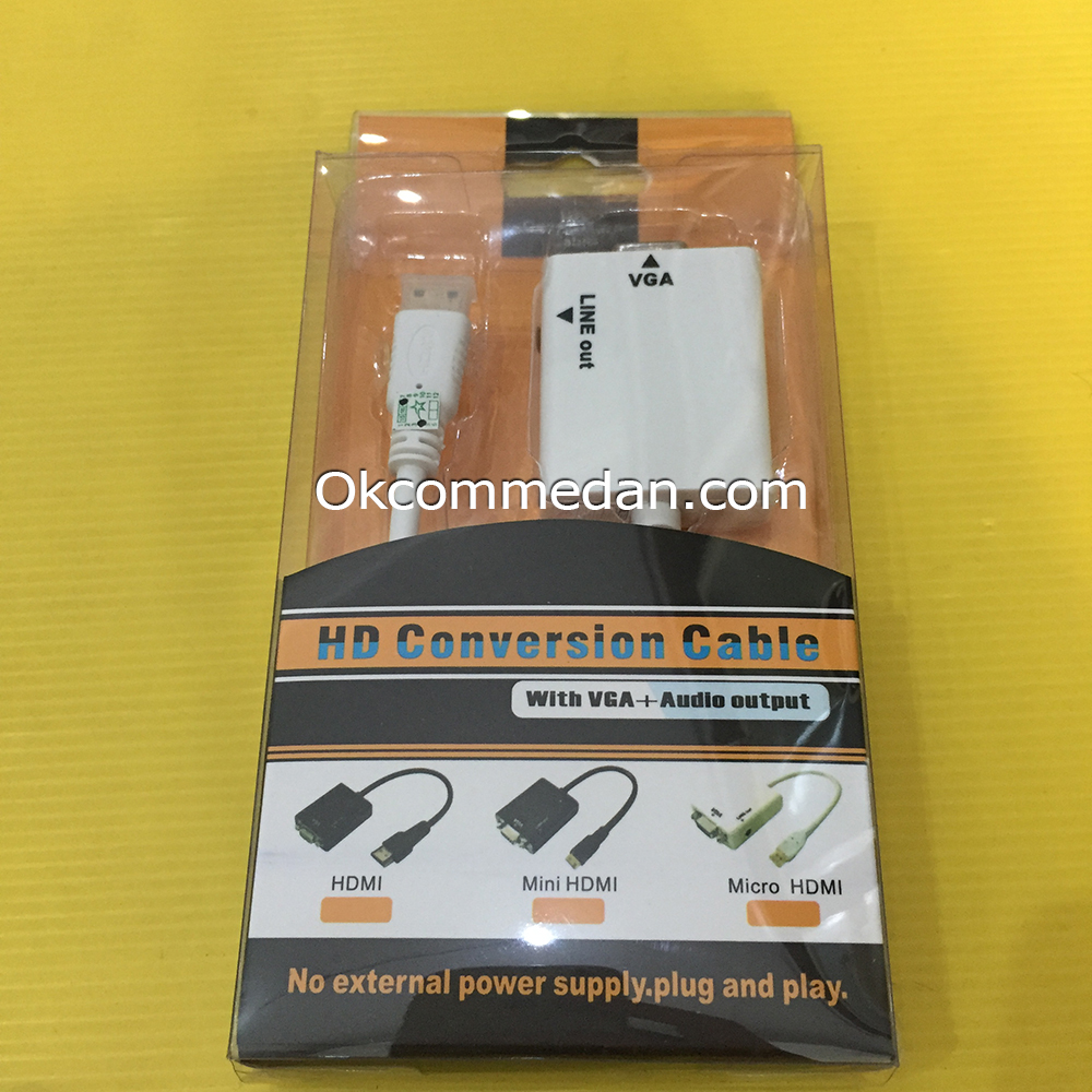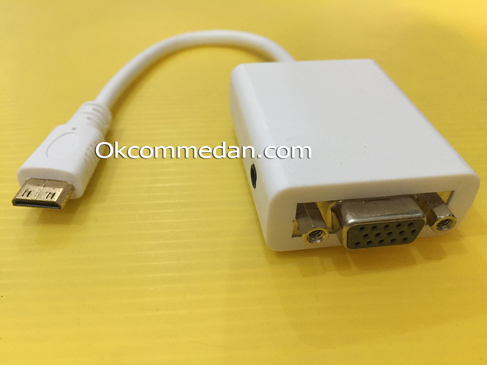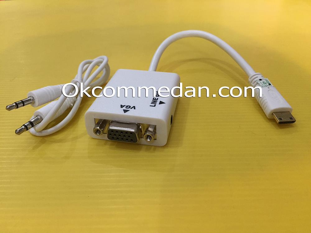 Kabel Konverter Mini HDMI ke VGA adalah Konverter untuk mengkonversikan Sinyal Digital ke analog dan dilengkapi dengan audio port ( 3,5 mm ) .
