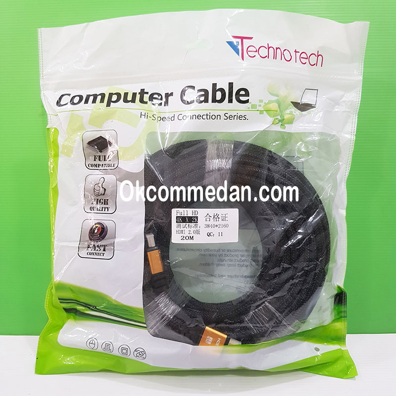 Kabel HDMI 20 meter  merek technotech ini adalah kabel yang mendukung resolusi 4K ( 3840 x 2160 ) dan merupakan kabel hdmi versi 2.0 . Kabel ini cocok dipakai untuk menghubungkan pc desktop atau notebook atau perangkat lainnya untuk ditampilkan ke LCD Monitor / LCD Proyektor / LED TV dengan kualitas gambar yang bagus.