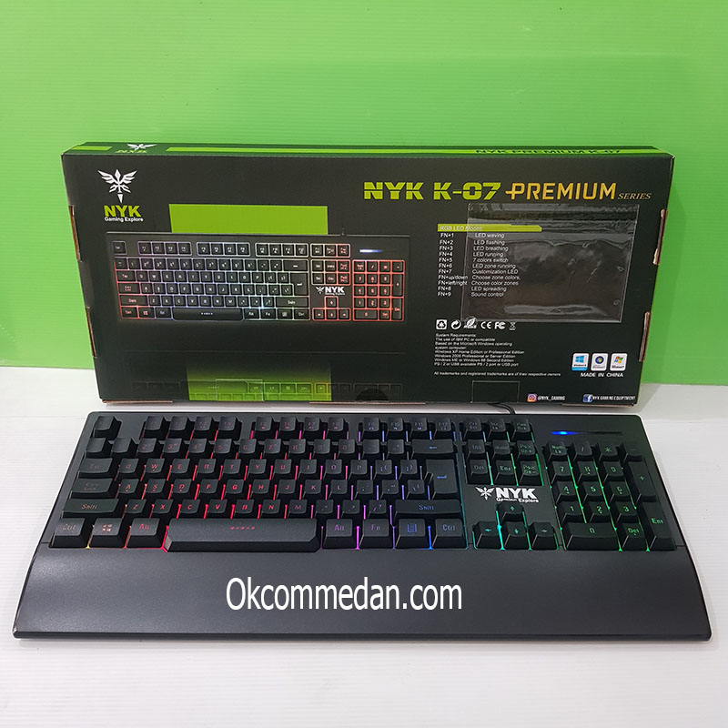 Keyboard gaming NYK K07 merupakan keyboard gaming Usb yang dilengkapi dengan rainbow backlight dan audio mode. Keyboard K07 ini memiliki banyak kelebihan seperti mode LED Backlight yang bergelombang sampai mode audio blacklight yaitu mode dimana LED akan menyala ketika keyboard mendeteksi adanya suara.