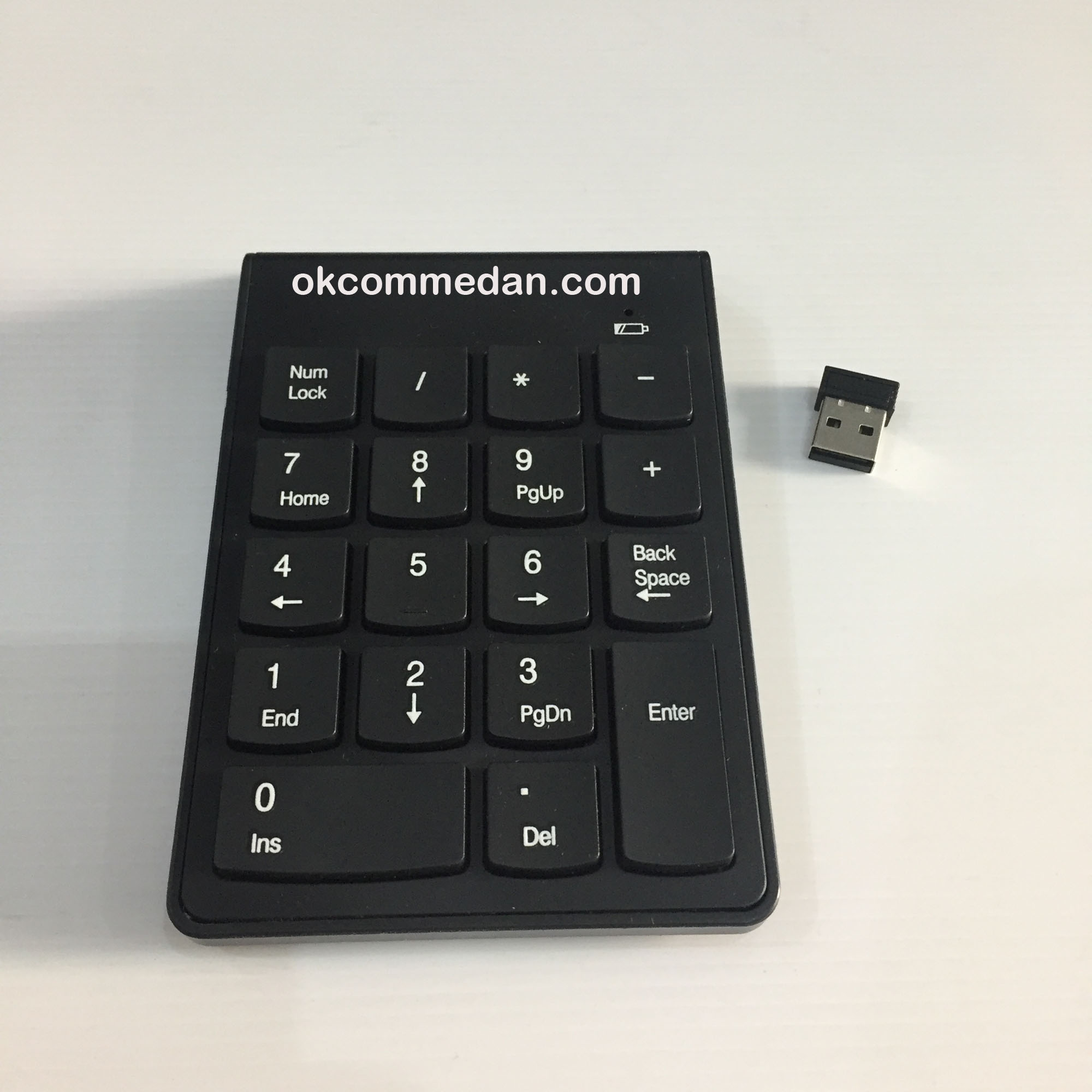 Untuk para pengguna notebook/laptop kini anda tidak perlu suah payah lagi untuk memasukkan angka dalam berhitung karena keyboard yang ada dinotebook didesign kecil sehingga tidak ada tampilan numerik tersendiri. Keyboard numerik wireless ini sangat cocok bagi anda karena didesain dengan wireless (tanpa kabel) dan hanya dengan usb receiver dan penggunaan plug and play.