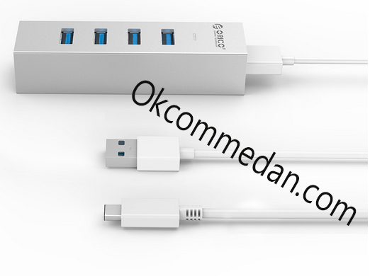 Orico ASH4-U3-SV adalah USB 3,0 HUB 4 Port yang dilengkapi dengan 2 bh kabel data yaitu :