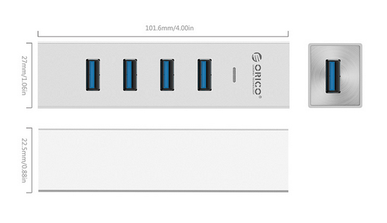 Orico USB 3.0 Hub 4 Port ini didesign dengan menggunakan aluminium alloy chassis dengan ketebalan 1mm , dan mengadopsi model produk MAC , sehingga cocok untuk ultrabook kita .