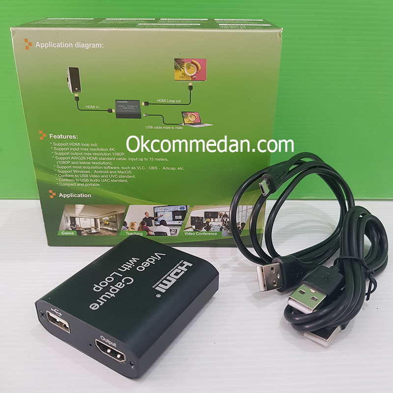 Cara pakai HDMI Video Capture dengan loop out ini adalah pertama kita mengkoneksikan source hdmi seperti dari Handycam / Camera digital ataupun UHD Sinyal source pada alat ini , dengan menggunakan kabel HDMI ( Paling panjang hanya bisa 15 meter ) dan untuk Outputnya kita dapat menghubungkan 1 bh LED Monitor dengan koneksi HDMI untuk displaynya dan USB Port Outputnya kita hubungkan ke Komputer ataupun Laptop kita untuk direkam dengan menggunakan software.