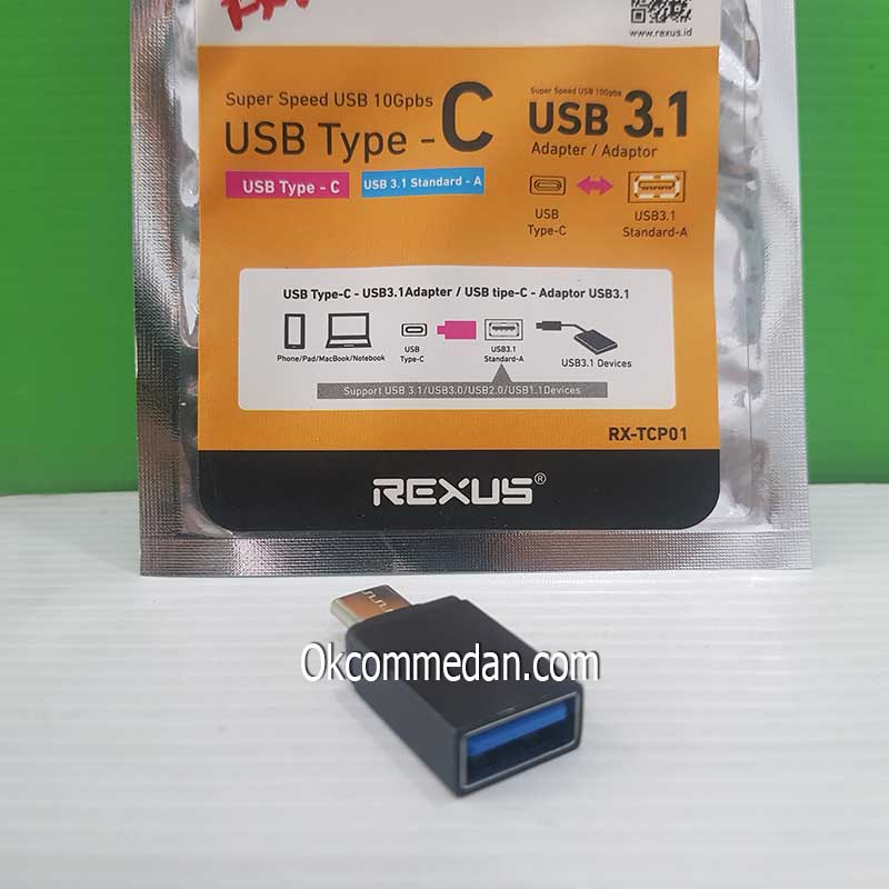 OTG Merek Rexus USB Tipe-C ke USB 3.1 Tipe A adalah Converter untuk merubah port USB Tipe-C menjadi Port USB 3.1 Tipe A betina dengan kecepatan yang cepat , bisa mencapai 10 Gbps.