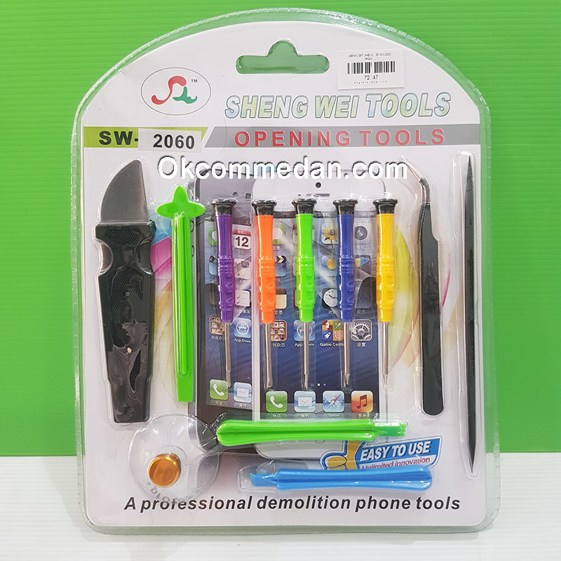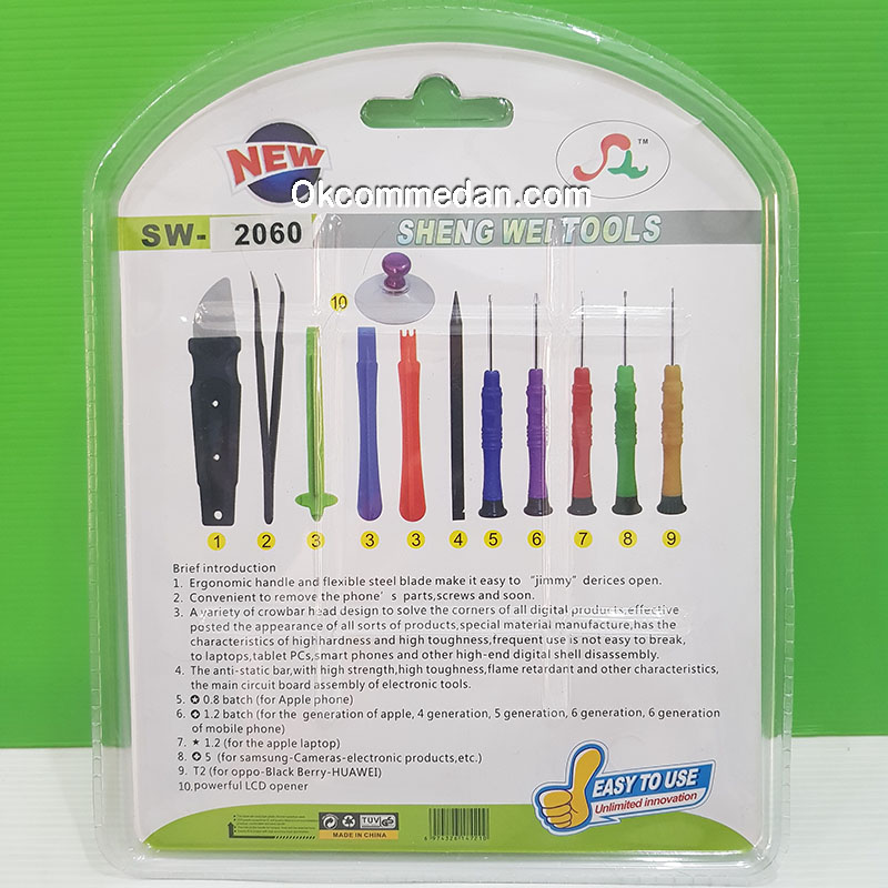 Sheng Wei Tools tipe SW-2060 adalah 12 pcs alat untuk pembuka smartphone dan produk elektronik lainnya seperti oppo , blackberry , hauwe , laptop apple , iphone generasi 4 , 5 , 6 maupun Samsung.