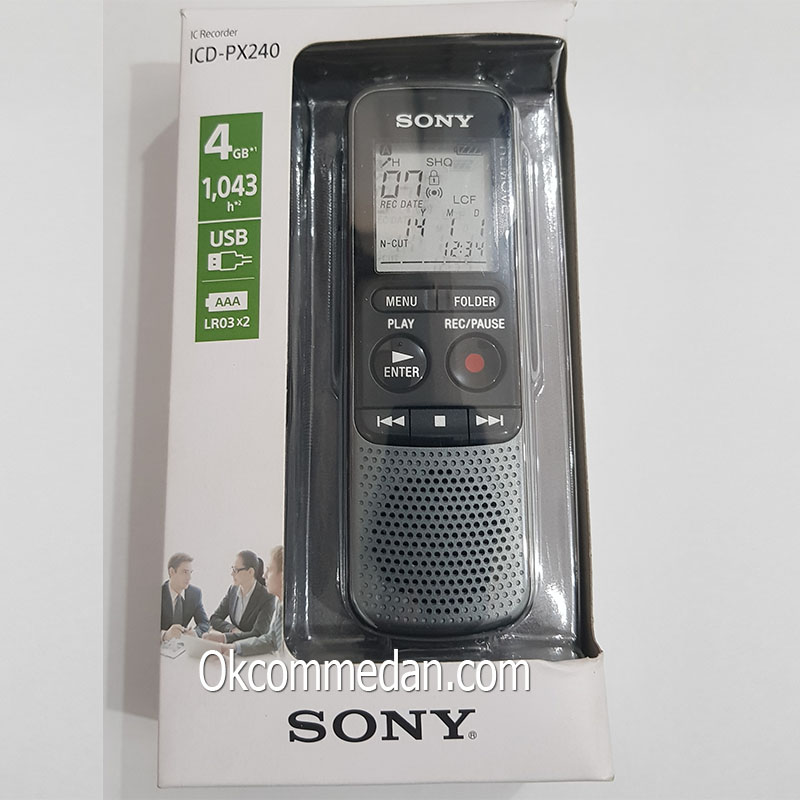 Sony PX240 dilengkapi dengan memory 4 Gb yang dapat kita gunakan untuk merekam suara sampai dengan 1043 jam dengan format MP3 8 kbps .