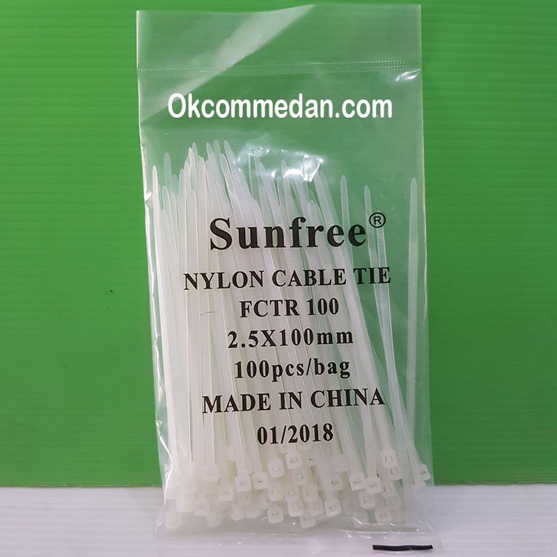 Kabel tie sunfree ini berukuran 2.5 mm lebar dan panjangnya 100 mm dan terbuat dari bahan nylon dengan warna putih. Dalam 1 bungkus ini terdapat 100 pcs .