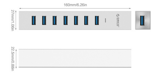 Spesifikasi Orico USB 3.0 Hub 7 port ( ASH7-U3 Pro ) adalah :