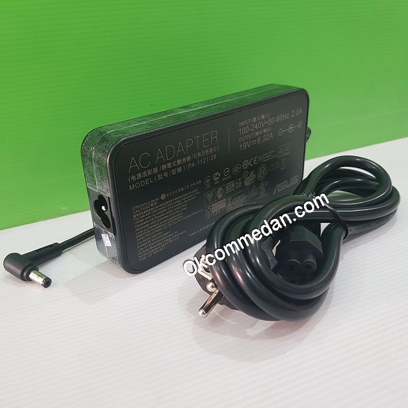 Adaptor Asus dengan output 19v 6.32a dan ujung konektornya berukuran 5.5 mm x 2.5 mm adalah adaptor yang biasanya dipakai untuk laptop asus ROG dan bisa juga dipakai untuk tipe lain yang penting outputnya sama .