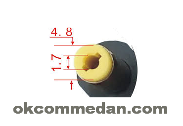 Yang perlu diperhatikan dalam sebuah adaptor adalah besarnya Voltase dan Amperenya. Untuk Adaptor HP ini Voltasenya adalah sebesar 18.5V dan 3.5A. Setelah Voltase diketahui selanjutnya adalah kepala adaptornya, kepala adaptor notebook HP ini diameter dalam 1.7mm dan diameter luarnya 4.8 mm kepala adaptor ini adalah seperti gambar berikut: