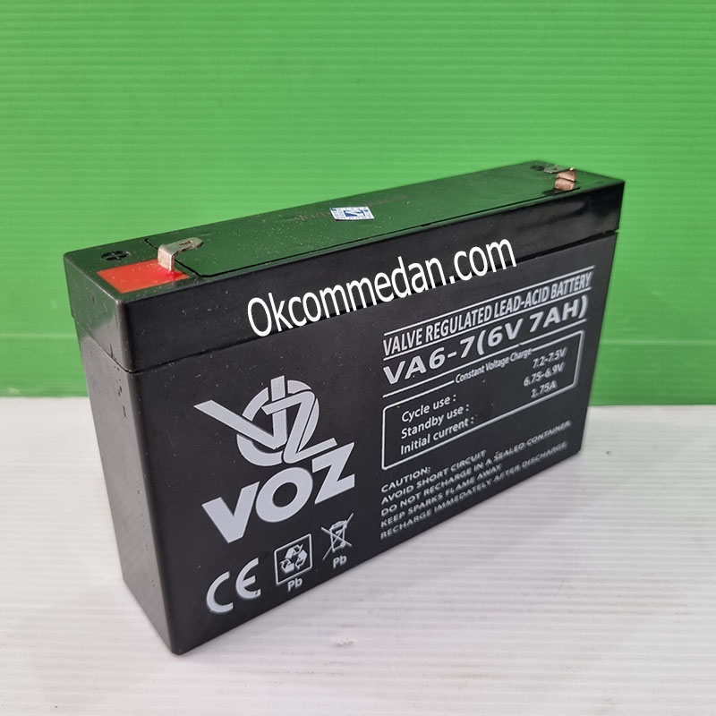 Baterai kering Voz VA6-7 adalah Valve regulated lead acid batteray yang berkapasitas 6v 7ah.