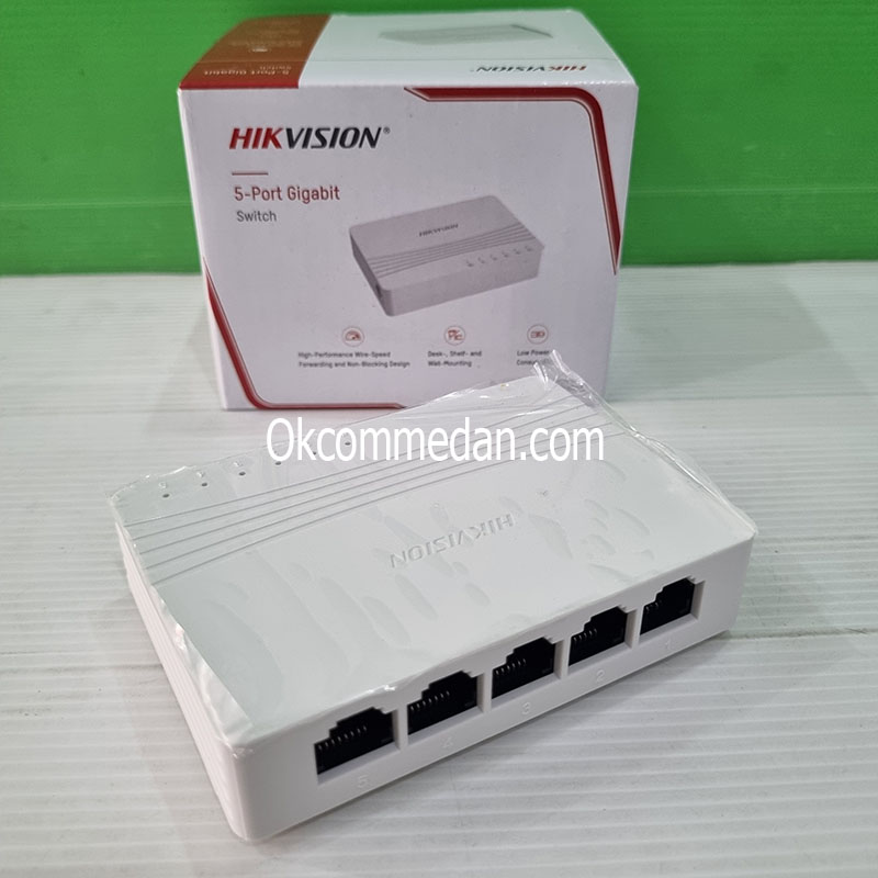 Switch Hikvision DS-3E0505D-E memakai casing dengan bahan plastik dan didesign tipis , dengan model yang sederhana , serta mendukung plug and play.