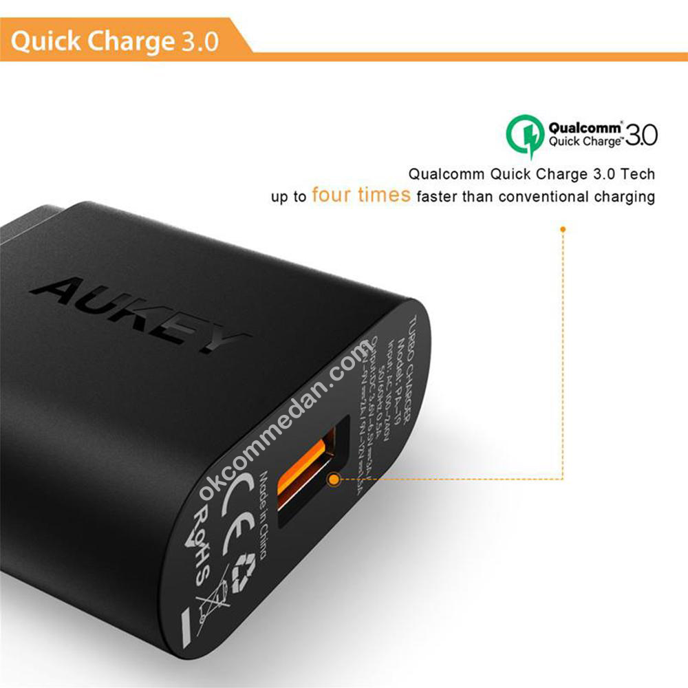 Aukey Wall charger PA-T17 merupakan wall charger aukey dengan teknologi Qualcomm 3.0, yang dapat mengisi baterai 4x lebih cepat dari charger biasa. Dengan teknologi ini memungkinkan anda dapat mengisi/mencharge hp maupun perangkat lainnya dengan cepat, lebih kurang 80% dalam waktu lebih kurang 35 menit.