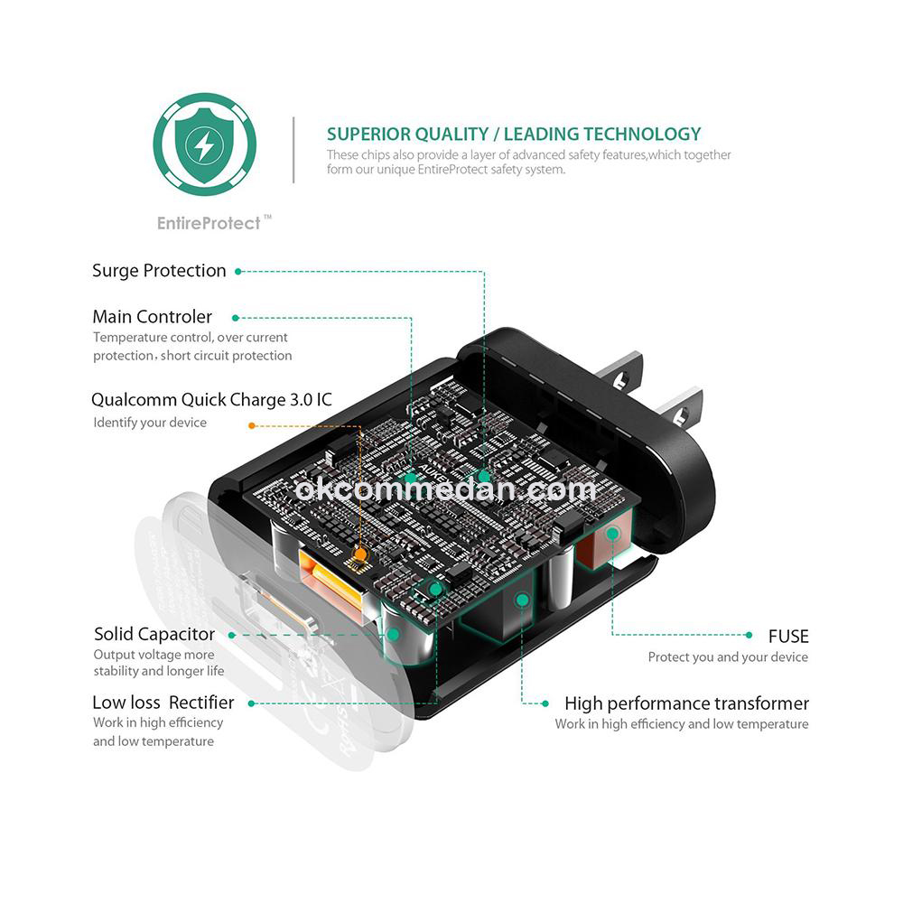 Aukey wall charger PA-T17 ini menggunakan teknologi intelligent for optimum voltage sehingga disesuaikan dengan perangkat yang kompatibel, dan siklus pengisian baterai yang lebih optimal, panas yang dihasilkan juga lebih sedikit dibandingkan dengan perangkat lainnya.