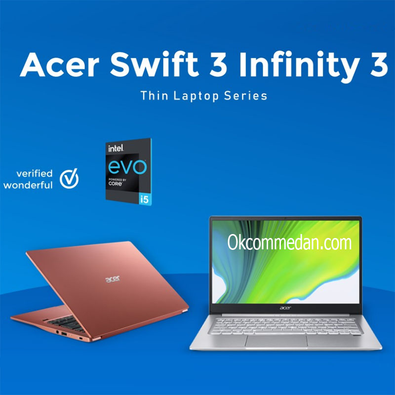 Acer Swift 3 Infinity 3 SF314-59 dengan processor Intel Core i5 1135G7 adalah laptop yang generasi terbaru dengan processor generasi ke 11 , yang dilengkapi dengan memory 8 Gb DDR4 , SSD 512 Gb , layar 14” IPS Full HD , Grafik card Intel Iris Xe dan tersedia operating system windows 10 home serta software microsfot office home & student 2019 asli.