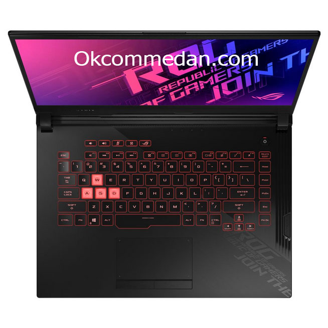 Laptop Asus Strix G G512Lu-i766B7t pada bagian casing luarnya akan terlihat percikan lampu RGB dan terlihat juga melilit pada bagian samping casingnya , sehingga keindahan laptop ini terlihat dari luarnya juga. Sedangkan pada bagian dalam Keyboard Asus StrixG G512Lu-i766b7t juga memiliki lampu RGB dan terdapat highlight pada tombol WASD nya.