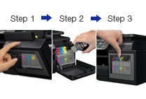 Proses Pengisian tinta pada printer brother T500w ini sangat mudah , dan hanya berlangsung dalam 3 tahapan saja , dan proses ini bisa terjadi dalam 3 tahapan karena adanya posisi ink tank yang berada didepan printer tersebut.