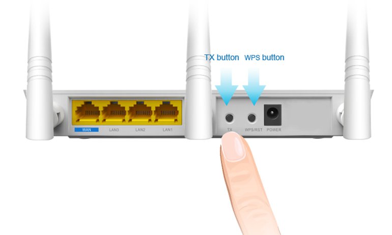 Selain tombol WPS, ada tombol TX yang berfungsi untuk menyesuaikan sinyal wireless dengan mudah. Tekan dan tahan tombol TX ini sekitar 3 detik dan lepaskan, lampu LED G akan mati dan lampu LED S akan menyala, maka anda akan mendapatkan performa wireless yang lebih baik.