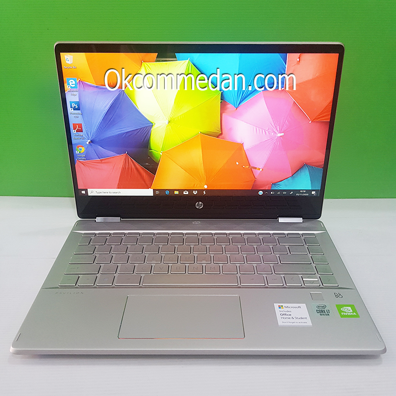 Laptop HP Pavilion X360-14-dh1054tx adalah laptop yang memberikan kita kebebasan untuk bekerja dan bermain sesuai dengan keinginan kita masing masing. Memakai processor Intel Core i7 10510u , memory 8 Gb , SSD 512 Gb, Grafik card nvidia geforce mx 250 2 gb, layar 14” touch screen dan dilengkapi operating system windows 10 home dengan software microsoft office home and student 2019 asli.