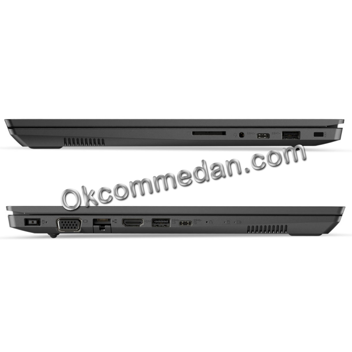 Lenovo V330 memiliki tempat untuk ditempatkan optical drive maupun baterai tambahan dan dilengkapi dengan multiple port USB-C dan USB 3.0