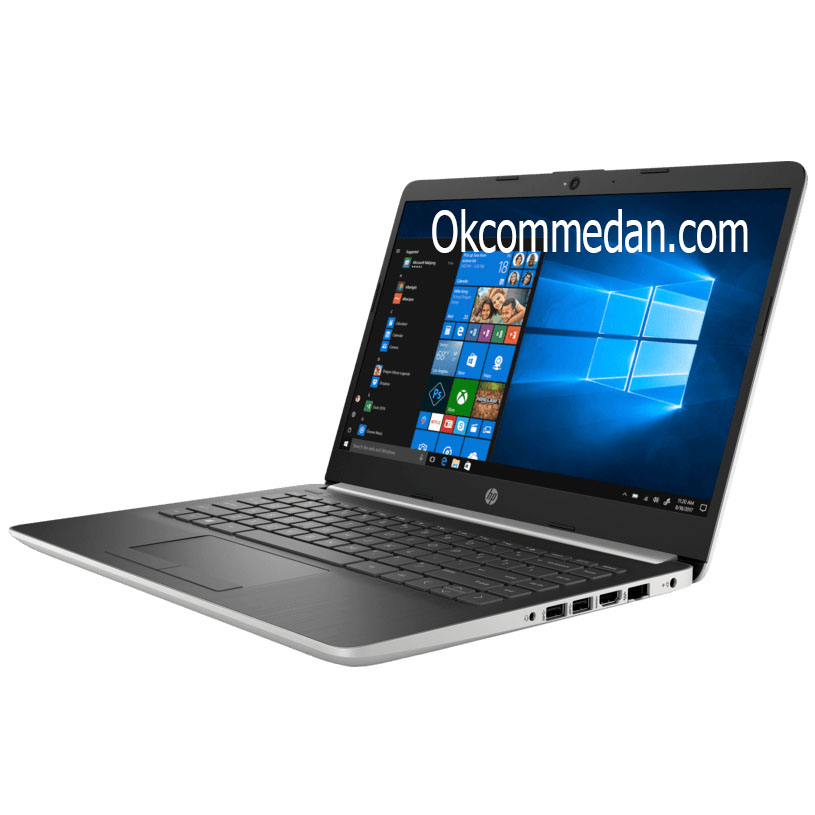 HP14s-Cf1048tx merupakan laptop dengan warna silver dan bagian dalamnya berwarna hitam