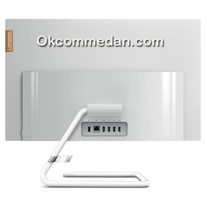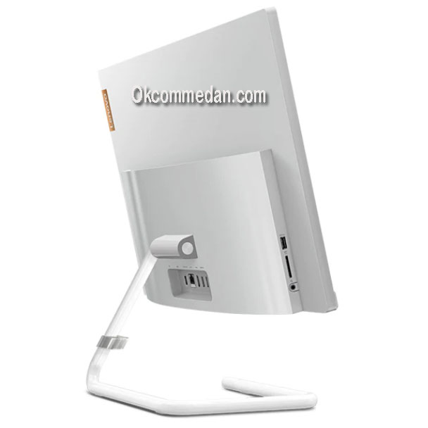 Pada bagian kaki Lenovo all in one A340-24icb terdapat pengait kabel , sehingga kabel yang berserakan dapat tersusun dengan rapi . Dibelakang Pc all in one ini terdapat berbagai port interface yang memudahkan kita untuk menghubungkan device lain ke pc all in one ini seperti HDMI , Ethernet port dan port usb .