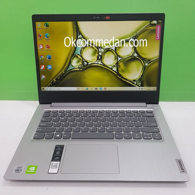 Laptop Lenovo Ideapad 3 14imL05 dengan processor Intel Core i3 10110u ini memiliki dimensi fisik yang tipis dan memakai bezel tipis pada kedua sisinya , sehingga menjadikan laptop tersebut menjadi ringan dan sudut pandang yang besar.