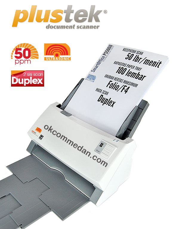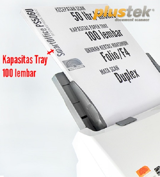 Plustek Scanner PS506u adalah scanner dengan model ADF ( automatic document feeder ) yang dapat menampung kertas untuk discan sebanyak 100 lembar , dan Scanner ini mempunyai kemampuan untuk menscan 2 sisi dari 1 lembar kertas secara bersamaan ,dan mempunyai sensor Ultrasonic , yaitu merupakan sensor yang berfungsi untuk mencegah menarik kertas yang akan discan lebih dari 1 lembar , sehingga tidak ada dokumen yang terlewatkan untuk discan .