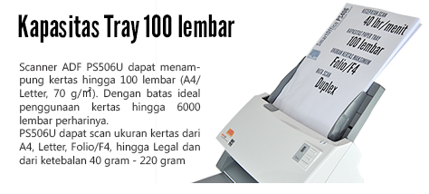 • Kertas / dokumen sebanyak 100 lembar dapat kita masukan ke tempat kertas Scanner PS506u