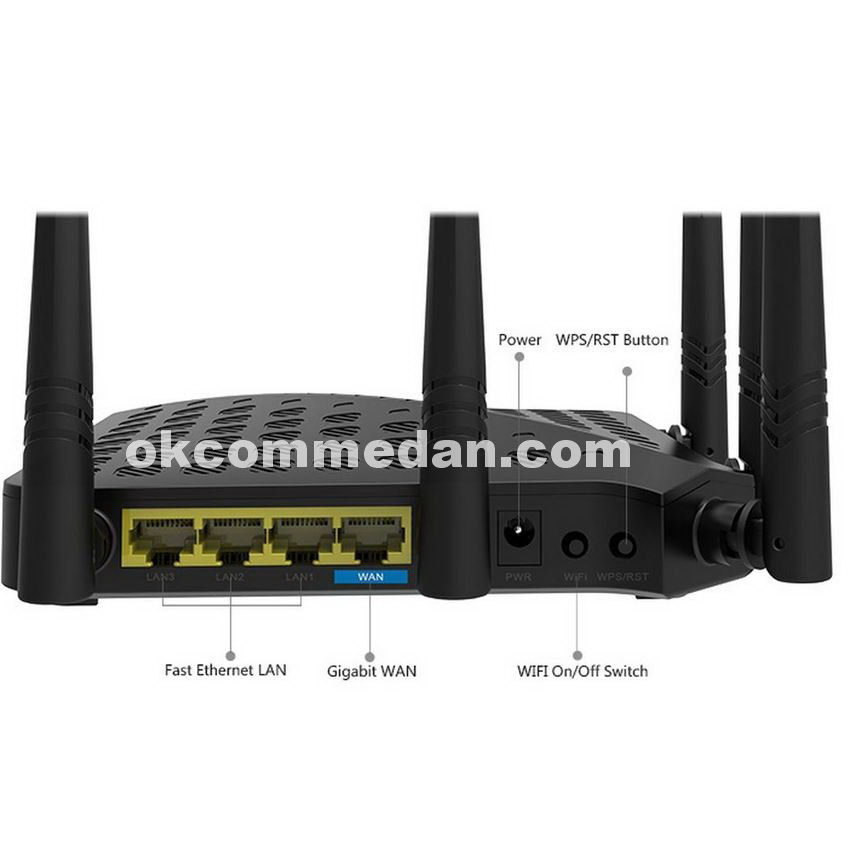 tenda fh1202 5antenaWireless Router tenda FH1202 ini adalah wireless router yang mampu memberikan koneksi hingga 1200Mbps, yang kompatibel dengan 802.11.ac. Tenda Fh1202 ini memiliki bentuk yang unik dan dilengkapi dengan 5 antena yang menyatu dan tidak bisa dilepas. Walaupun antena ini tidak bisa dilepas tetapi memiliki cakupan jangkauan yang luas.