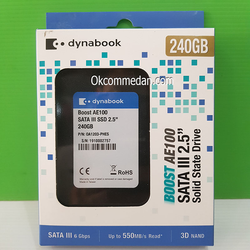SSD Dynabook Boost AE100 dengan kapasitas 240 Gb adalah SSD yang memiliki interface SATA III 6 Gbps dengan form factor 2,5 inchi dan cocok dipakai pada Laptop , PC All in one , PC Desktop maupun PC Mini.