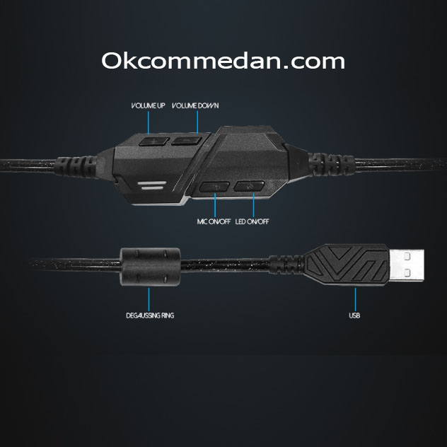Pada kabel dari headset fantech HG23 ini terdapat audio control untuk mengatur volume up / down , Mic on/off dan LED on/off. Interface dari Headset ini adalah USB .