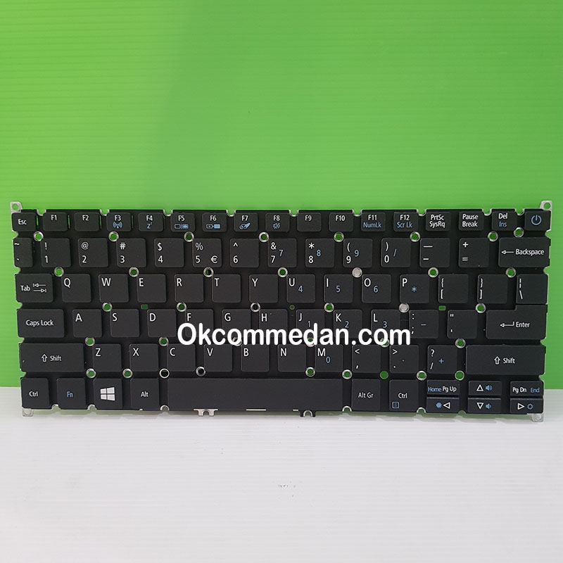 Keyboard baru untuk notebook Acer ES1-132 adalah keyboard model tanam dengan tombol power yang terdapat pada sudut kanan atas dari keyboard tersebut.