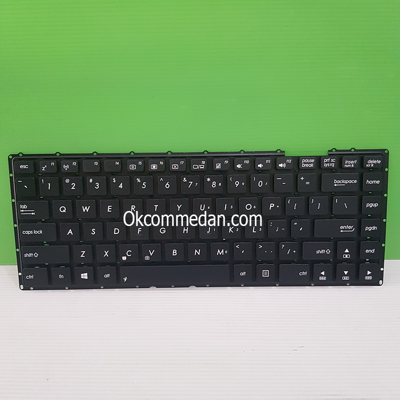 Keyboard baru untuk laptop asus x454 series adalah keyboard model tanam , dan berwarna hitam , dengan susunan tombolnya sama dengan versi US.