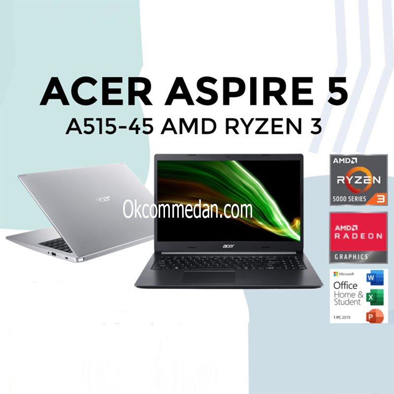 Acer Aspire A515-45 dengan processor AMD Ryzen 3 5300u adalah laptop dengan processor AMD Ryzen 5000 series yang telah terintegrasi dengan AMD Radeon grafik yang cepat , dengan memory 8 Gb , SSD 512 Gb , layar 15,6” serta dilengkapi operating system windows 10 home asli serta microsoft office home & student 2019 asli.