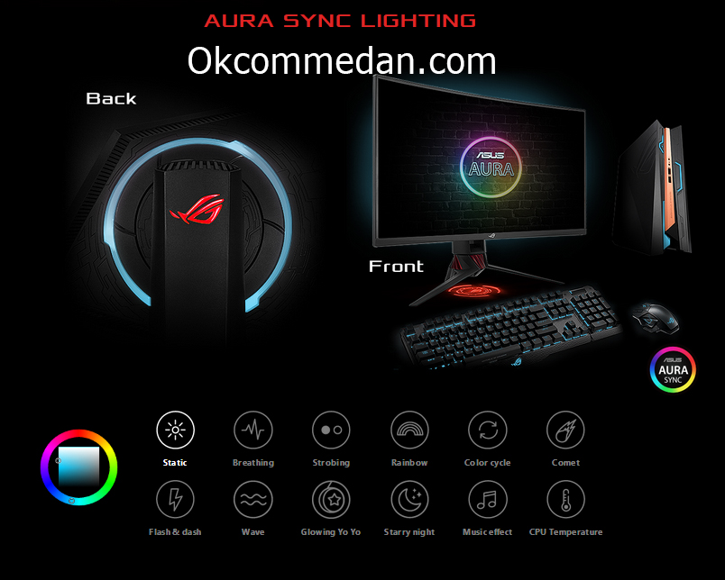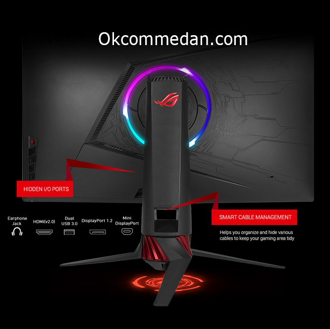 Gaming Monitor Asus XG32VQ mempunyai fitur Asus Aura Sync Lighting dibagian belakangnya , sehingga kita dapat mengatur tampilan cahaya sesuai dengan kemauan dan game yang sedang kita mainkan .