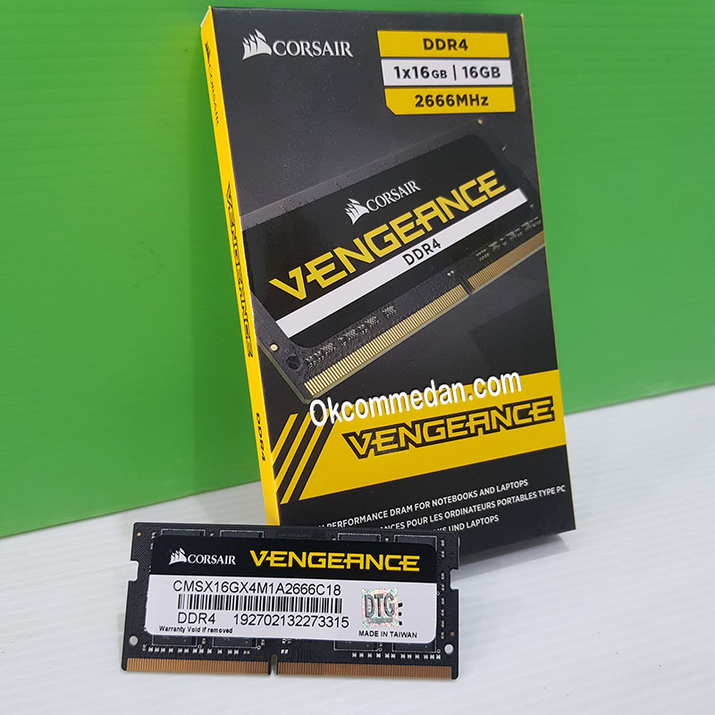 Corsair CMSX16GX4M1A2666C18 adalah sodimm memory dengan kapasitas 16 Gb dan speednya 2666 Mhz yang cocok dipakai pada laptop atau notebook.