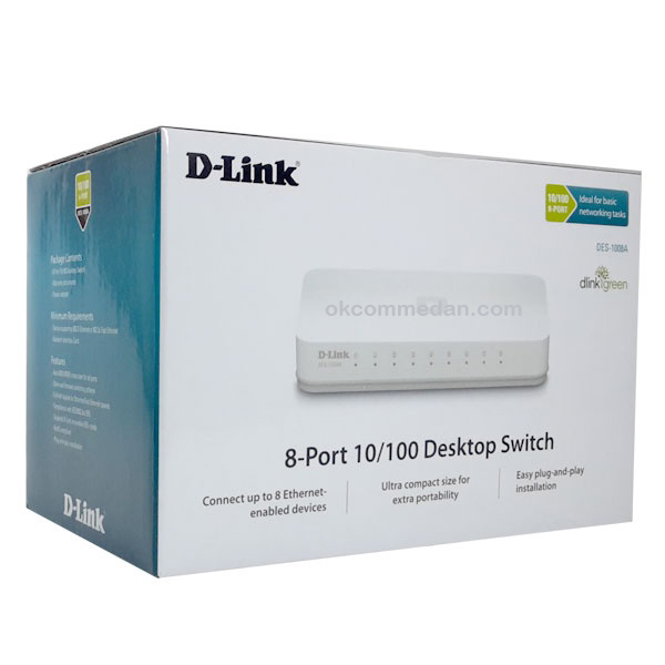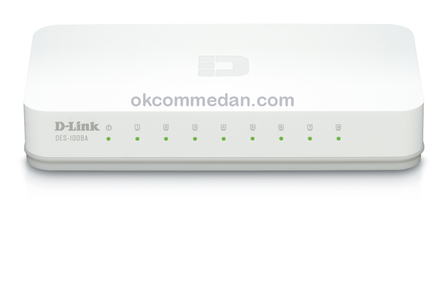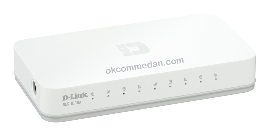 Dlink DES-1008A merupakan switch hub merk dlink dengan 8 port Ethernet 10/100Mbps yang dihubungkan dengan kabel lan. Dlink Switch hub ini bisa digunakan untuk menghubungkan sampai 8 komputer atau notebook untuk berbagi file atau folder yagn dihubungkan dengan menggunakan koeneksi internet.