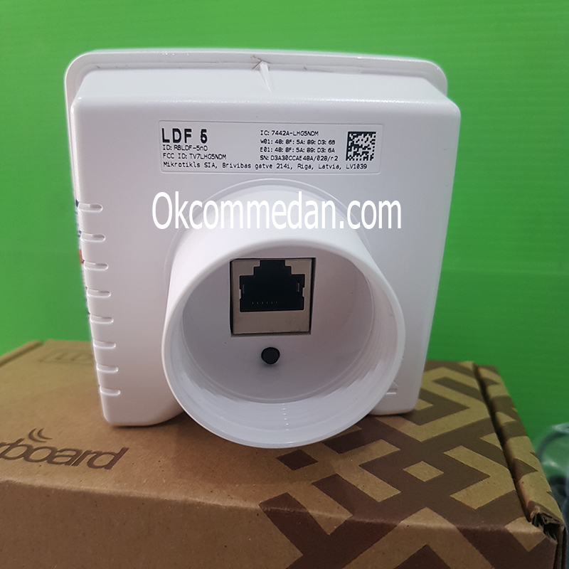 Mikrotik RBLDF-5nd adalah outdoor wireless system yang telah dilengkapi dengan antena internal dan dalam pemasangannya harus dikombinasikan sendiri dengan satellite offset dish antena . Sehingga Dish nya dapat menjadi refletor dan amplifying sinyalnya.