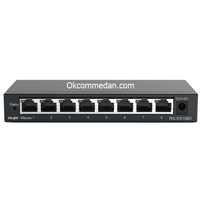 Ruijie RG-ES108d merupakan 8 Port 10/100 Mbps Unmanaged Switch dengan Case yang terbuat dari bahan metal.