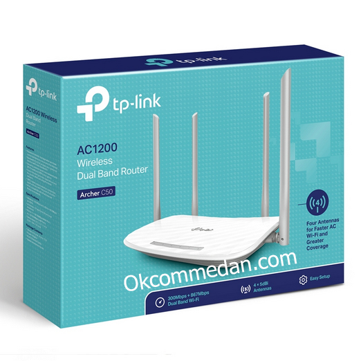 Tplink Archer C50 adalah Wi-Fi generasi terbaru dengan standard 802.11 ac, yang memiliki kecepatan 3 x lebih cepat dibandingkan dengan Wireless N , dan kombinasinya akan dapat memberikan kecepatan transfer sampai dengan 1,2 Gbps yaitu 300 Mbps ( pada band 2,4 Ghz ) dan 867 Mbps ( pada band 5 Ghz ).