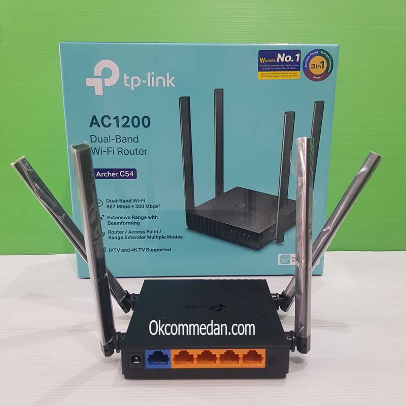 Tplink Archer C54 adalah Dual Band Wi-Fi Router AC1200 dengan 4 bh antena . Dapat dijadikan router mode, access point mode dan range extender mode.
