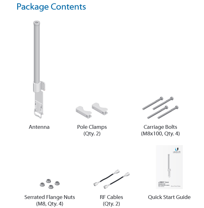 - Mounting : Universal Pole Mount , Rocket M Bracket dan Weatherproof RF Jumpers