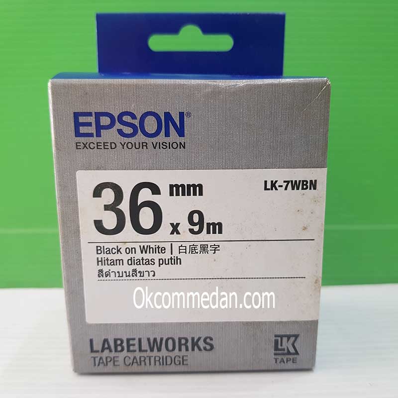 Epson LK-7wbn adalah Label Cartridge untuk printer Epson Labelwork dengan warna Tulisan warna hitam pada background warna putih , memiliki ukuran lebar 36 mm dan panjangnya 9 meter .