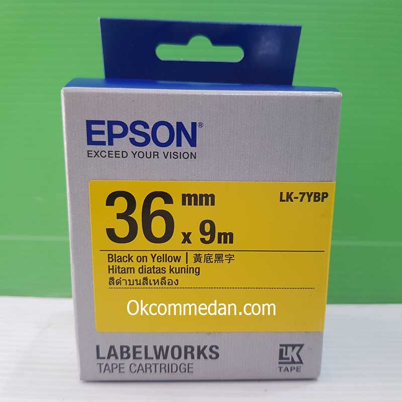 Epson LK-7YBP adalah Label Cartridge untuk printer Epson Labelwork dengan warna pastel kuning dan tulisannya hitam , memiliki ukuran lebar 36 mm dan panjangnya 9 meter .