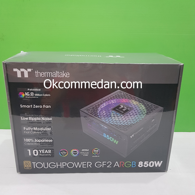 Thermaltake Toughpower GF2 ARGB 850 watt adalah Power Suppley dengan kapasitas 850 watt dan 80 plus Gold Certified Fully modular analog dan dilengkapi juga dengan 16,8 juta warna .