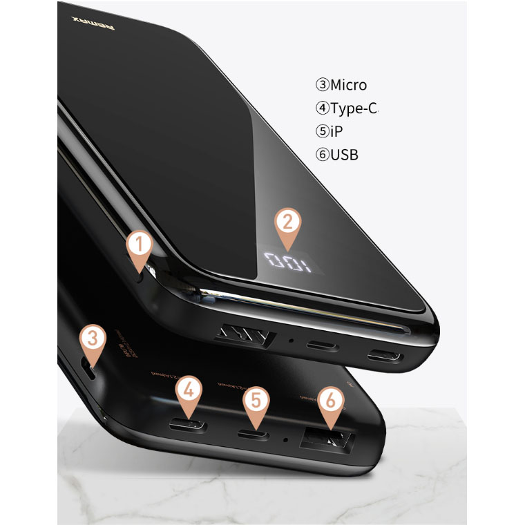 Power Bank Remax RPP-133 didesign dengan model mirror , sehingga seakan akan kita dapat bercermin dipowerbank ini . Power bank remax RPP-133 ini memiliki tampilan digital mengenai status baterai dilayarnya.