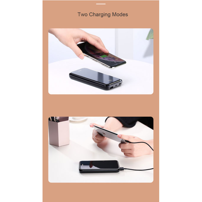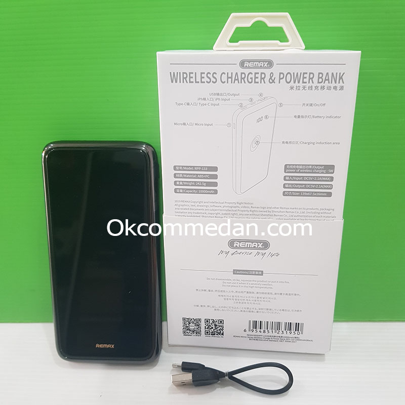Remax RPP-133 adalah Power bank yang mendukung pengisian daya device melalui wireless charging dan kabel , dengan kapasitas baterai didalamnya 10.000mAh.