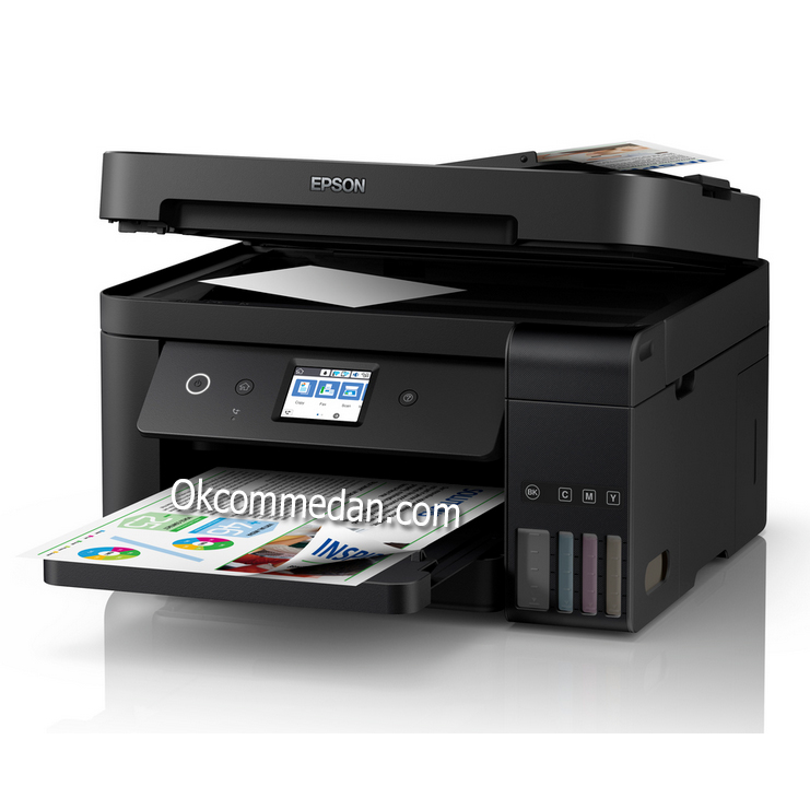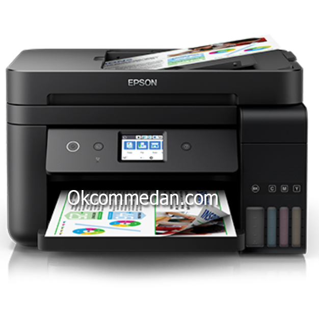 Epson L6190 mampu menghasilkan cetakan dengan resolusi 4800 dpi dan hasil cetakannya akan tahan air dan smudge resistant . Pada bagian tengah printer terdapat LCD Screen 2,4” sehingga kita dapat mengoperasikan printer tersebut dengan mudah.