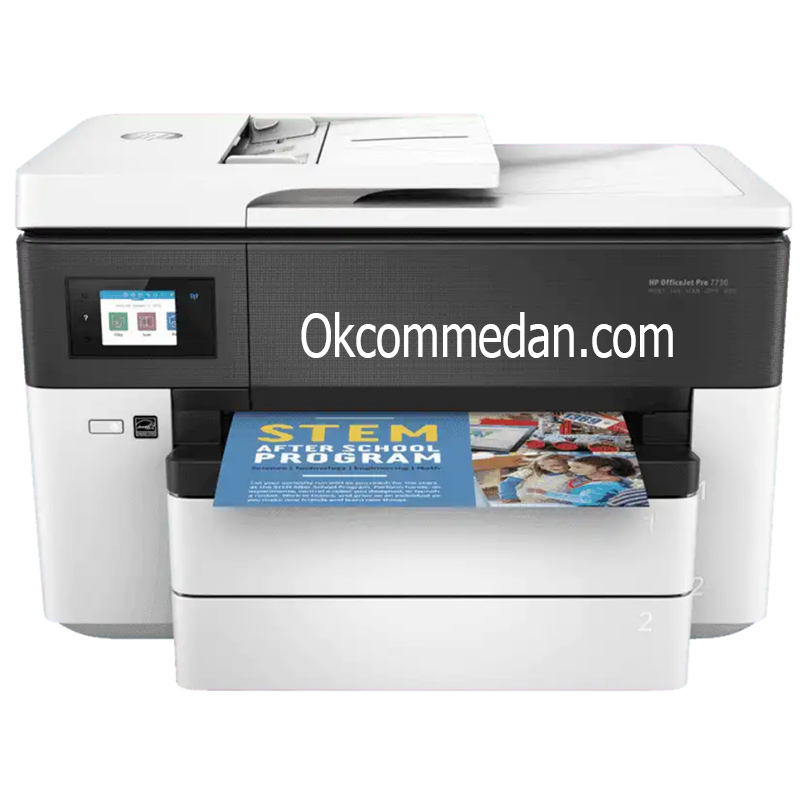 HP Office Jet Pro 7730 dapat mencetak pada ukuran kertas sampai dengan A3 , sedangkan untuk Scan dan Copy hanya bisa sampai ukuran kertas Legal.
